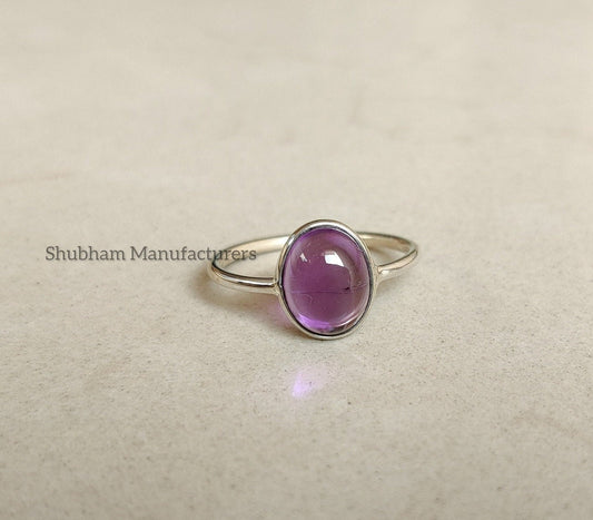 Natural Amethyst Ring, 925 Sterling Silver Ring, Purple Amethyst Jewelry, Everyday Ring for Women, Cabochon Gemstone Ring, Handmade Gift