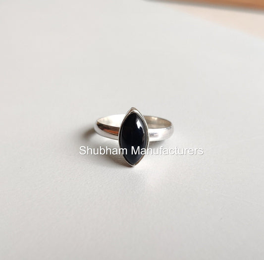 Natural Black Onyx Ring, 925 Sterling Silver Ring, Marquise Shaped Stone Ring, Promise Ring for Her, December Birthstone Jewelry for Women