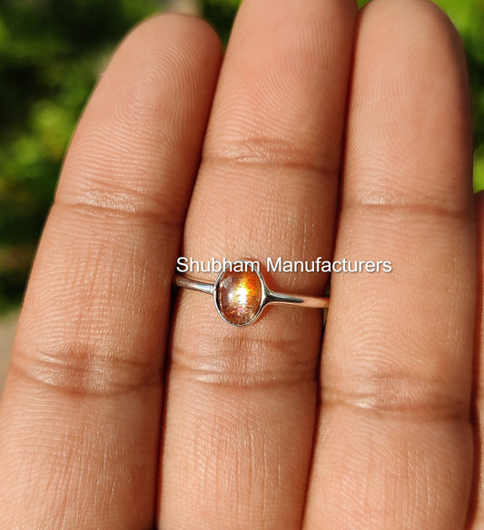 Natural Sun stone Ring, 925 Sterling Silver Ring, Simple Everyday Ring for Her, Sunstone Crystal Ring, Orange Stone Jewelry, Tiny Ring