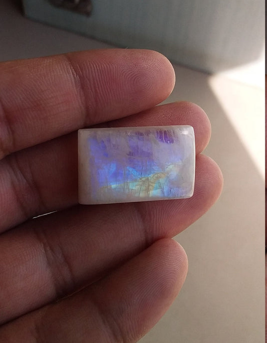 Octagon Rainbow Moonstone, Natural Gemstone for Jewelry Making, Flat Back Cabochon Gemstone, Natural White Labradorite, 36 CTS 32x16.5x7 MM