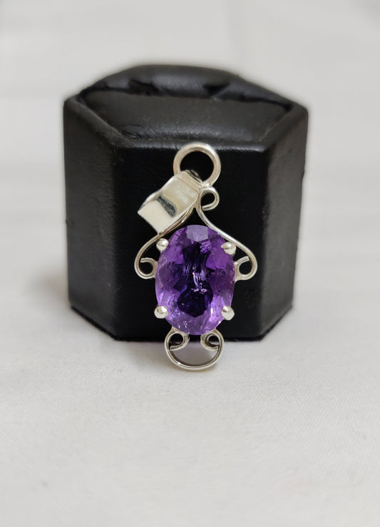 Purple Amethyst Pendant, 925 Sterling Silver Pendant, Amethyst Jewelry, Purple Stone Pendant, Fancy Shape Pendant, Stone of Energy