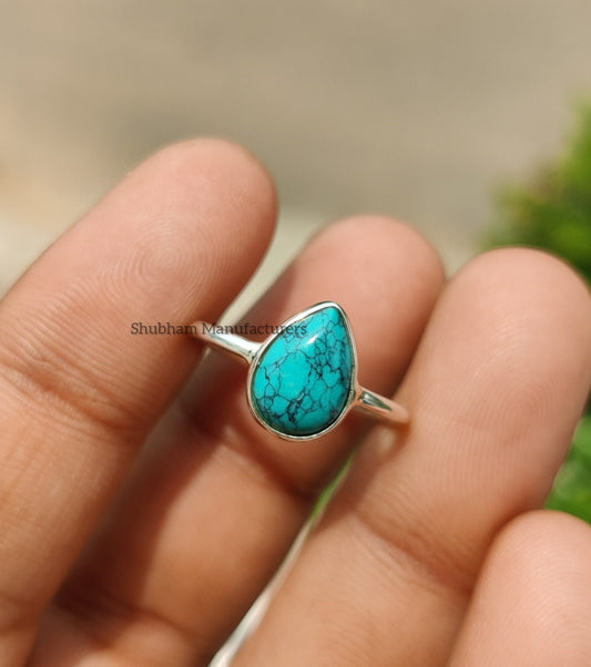 Pear Turquoise Ring , 925 Sterling Silver Ring, Natural Stone, Handmade Gift for Her, Gemstone Ring, Stacking Women Ring, Birthstone Jewelry