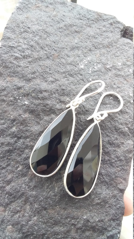 Black Onyx Earrings, Sterling Silver Earrings, Onyx Jewelry, Gemstone Handmade Jewelry, Dangle Earrings, Earrings for Women, Drop Earrings