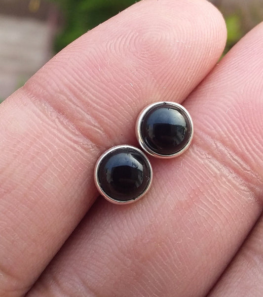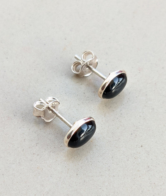 Black Onyx Stud Earrings, 925 Sterling Silver Studs, Onyx Post Earrings, Dainty Black Studs, Black Cabochon Gemstone, Tiny Studs for Girls
