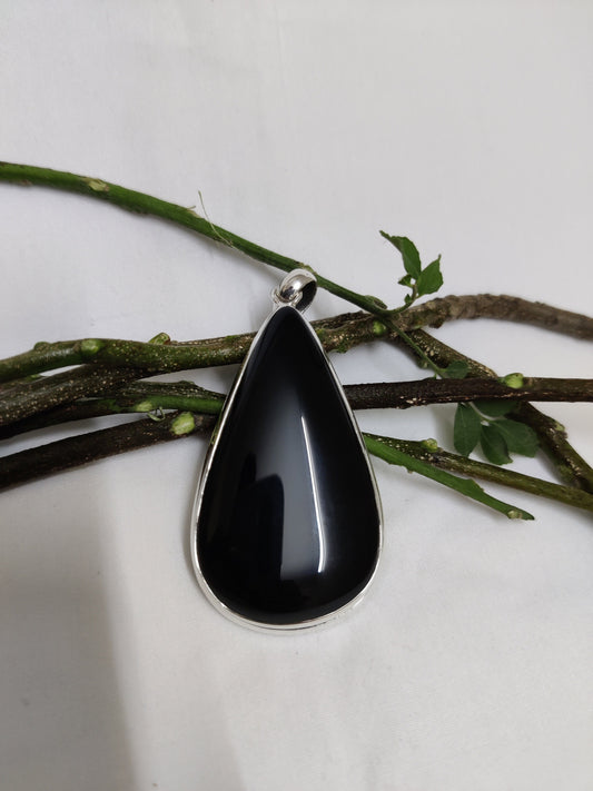 Black Onyx Pendant, 925 Silver Jewelry, Natural Black Onyx Gemstone, Cabochon Stone Pendant, Black Stone Pendant, teardrop necklace silver
