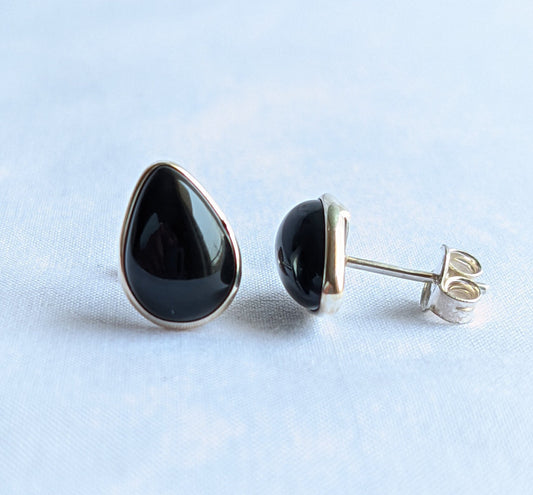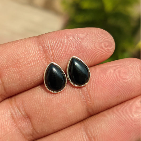 Black Onyx Stud Earrings, 925 Sterling Silver Post Earrings, Minimalist Stud Earrings, Black Onyx Jewelry, Black Gemstone Studs, Pear Shape
