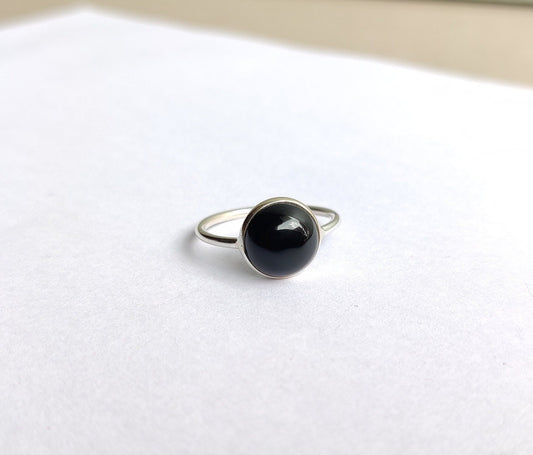 Black Onyx Ring, 925 Sterling Silver Ring, Natural Stone, Cabochon Gemstone, Onyx Minimalist Ring, Everyday Simple Jewelry, Stacking Ring