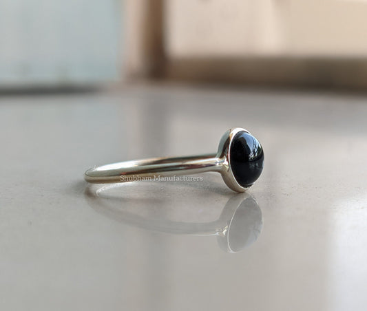 Black Onyx Ring, 925 Sterling Silver, Natural Gemstone, Stacking Onyx Ring, Black Crystal Stone, Onyx Jewelry, Cabochon Stone, Womens Ring