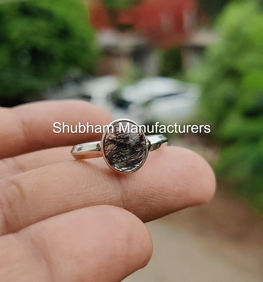 Black Rutile Quartz Ring, 925 Sterling Silver Ring, Natural Gemstone Jewelry, Rutilated Quartz, Black Stone Ring, Promise Handmade Ring