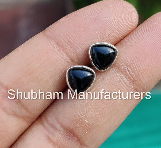 Black Onyx Stud Earrings, 925 Sterling Silver Studs, Black Studs for Women & Men, Cabochon Gemstone Earrings, Trillion Shape Studs for Girls