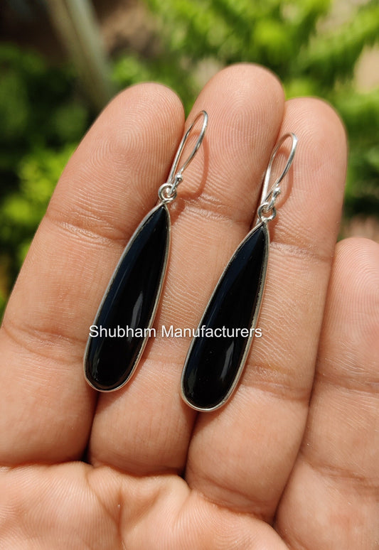 Black Onyx Earrings, 925 Sterling Solid Silver Earrings, Gift for Her, Gemstone dangle earrings, Women Earring, Anniversary Gift, Jewelry