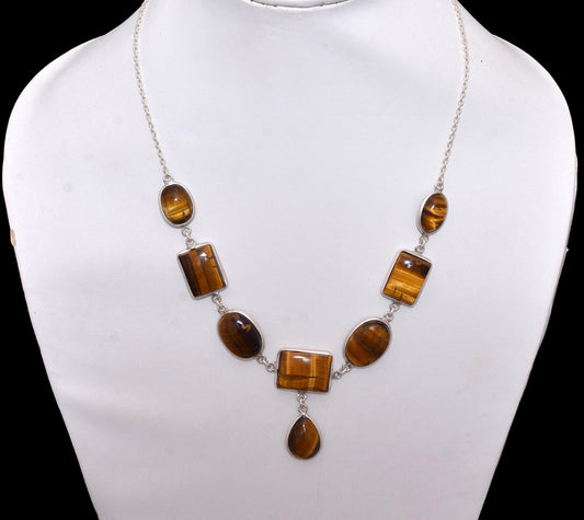 Tiger Eye Necklace, 925 Sterling Silver Necklace, Healing Crystal Jewelry, Wedding Necklace, Reiki Healing Necklace, Gift for Her