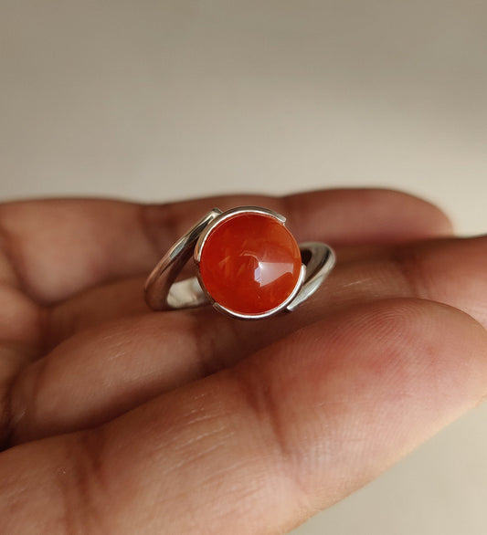 Sterling Silver Carnelian Ring, Orange Gemstone Ring, Wedding Jewelry for Women, Natural Stone Jewelry, Handmade gift for Her