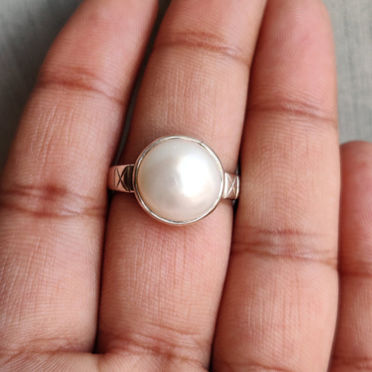White Pearl Ring, 925 Solid Sterling Silver Ring, Cabochon Pearl Jewelry, Rings for Women, June Birthstone Ring, Handmade Gift for Her