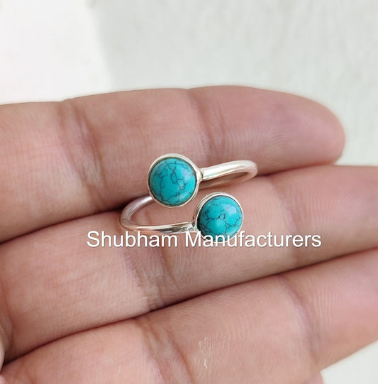 Turquoise Ring, 925 Sterling Silver Ring, Bypass Gemstone Ring, Natural Turquoise Jewelry, Everyday Simple, December Birthstone, Handmade