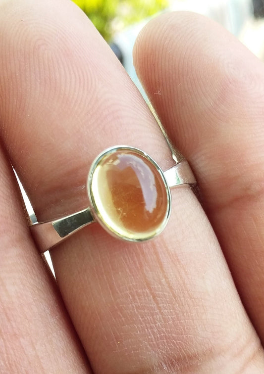 Citrine Ring for women, Natural Citrine Ring, Solid Sterling Silver Ring, Minimalist Ring for women, Yellow Stone Ring, Handmade Ring Size 8