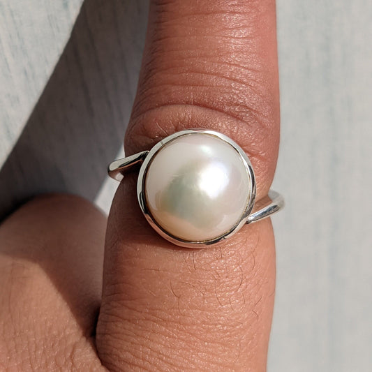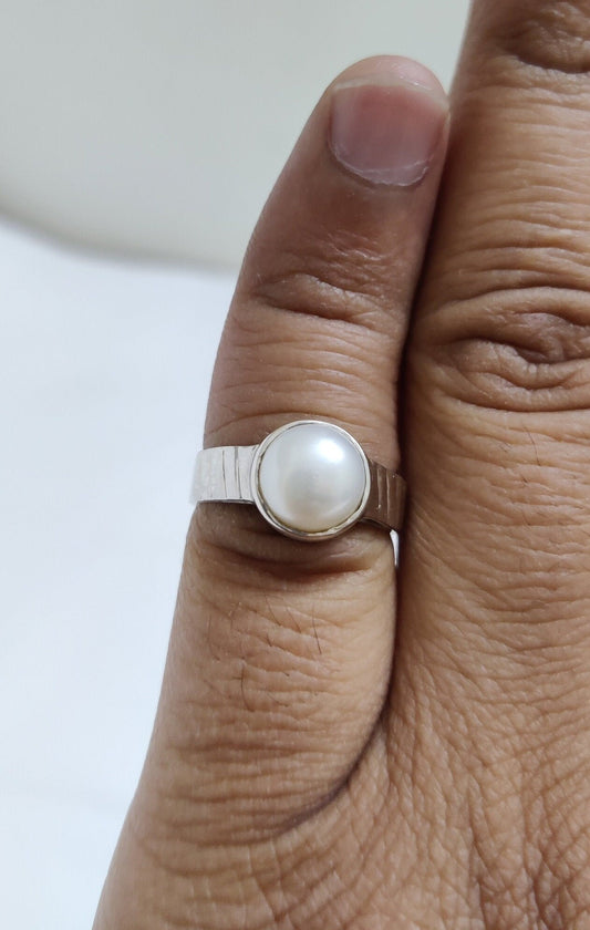 Designer Pearl Ring, Off White Cream Pearl Silver Handmade Ring, Ring for Women, Solid Silver Ring, gemstone ring women, ring size 7.5