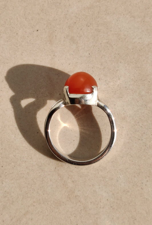 Carnelian Ring, 925 Sterling Silver Ring, Natural Stone, Cabochon Gemstone, Handmade Gift for Her, Everyday Simple Jewelry, Stacking ring