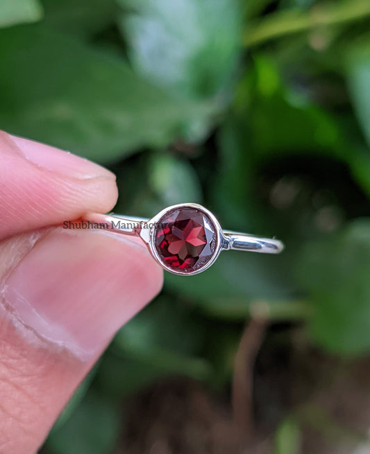 Garnet Birthstone Ring, 925 Sterling Silver, Dainty Silver Ring, Red Garnet Jewelry, Natural Gemstone Ring, Gift for Her, Womens Garnet Ring