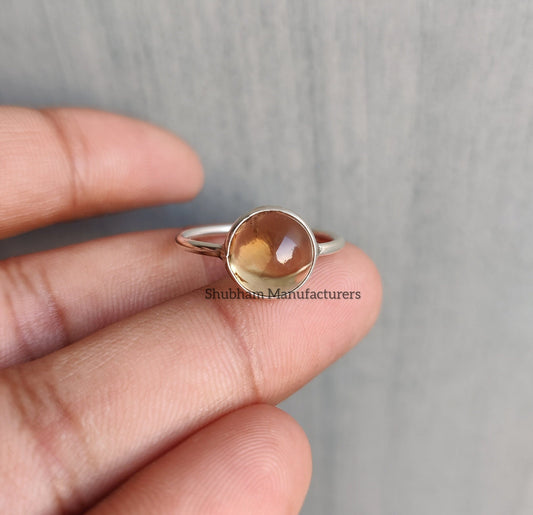Citrine Ring, 925 Sterling Silver Ring, Yellow Gemstone Ring, Citrine Jewelry, November Birthstone, Cabochon Stone Ring, Unique Gift for Her