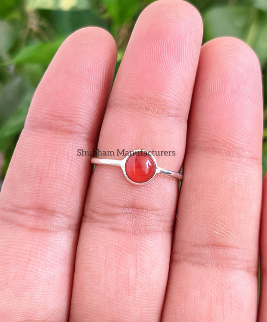 Carnelian Ring, 925 Sterling Silver Ring, Natural Stone, Cabochon Gemstone, Everyday Simple Jewelry, Minimalist Ring, Dainty Birthstone Ring