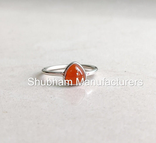 Carnelian Ring, 925 Sterling Silver Ring, Trillion Shape, Dainty Stone Ring, Orange Gemstone, Simple Everyday Ring for Women & Girl,Everyday