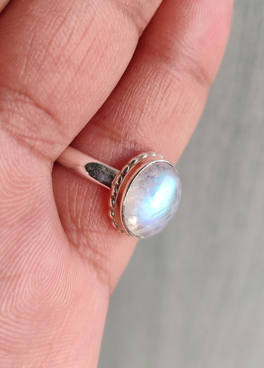 Genuine Rainbow Moonstone Ring, 925 Sterling Silver Ring, Blue Flash Moonstone Ring, Flashy Gemstone Ring, June Birthstone, Gift for Her