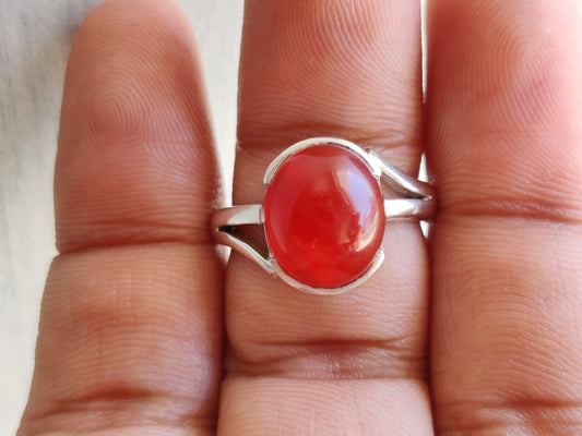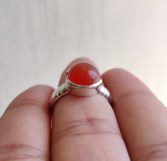 Genuine Carnelian Ring, 925 Sterling Silver Jewelry, Cabochon Stone Ring, Red Carnelian Jewelry, Alternative Engagement Ring, Gift for Women