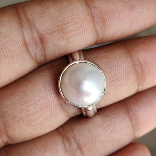 Genuine pearl ring, Handmade round shape gemstone ring, Pearl silver ring, White pearl ring, Women silver ring, 925 sterling silver rings