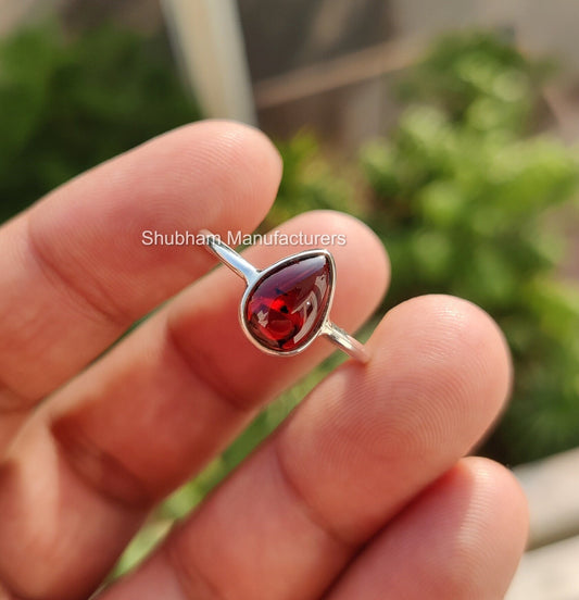 Garnet Ring, 925 Sterling Silver Ring, January Birthstone Ring, Natural Stone Ring, Handmade Gift for Women, Pear Shaped Ring,Everyday Ring