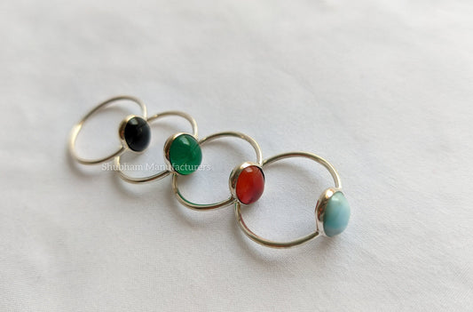 Gemstone Ring, 925 Sterling Silver Ring, Natural Stone Ring, Green Onyx, Carnelian, Black Onyx, Larimar, Gift Ring for Women, Handmade Rings