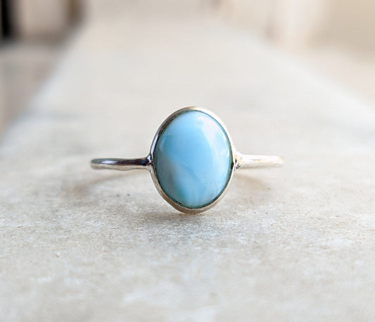 Larimar Ring, 925 Sterling Silver Ring, Cabochon Gemstone, Blue Stone, Handmade, Jewelry, Gift for Her, Everyday, Stackable Ring, for Women