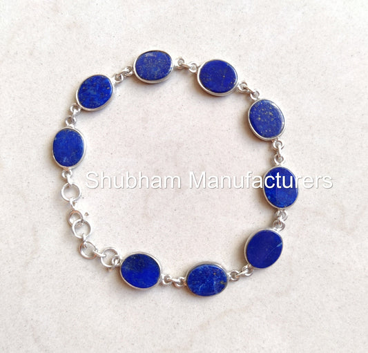 Lapis Lazuli Bracelet, 925 Sterling Silver Bracelet, Lapis Lazuli Jewelry, Blue Gemstone Bracelet, Natural Stone Adjustable Bracelet for Her