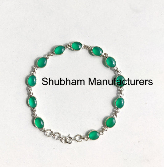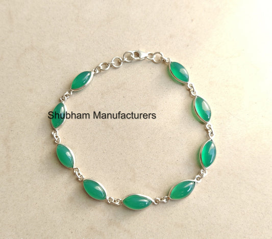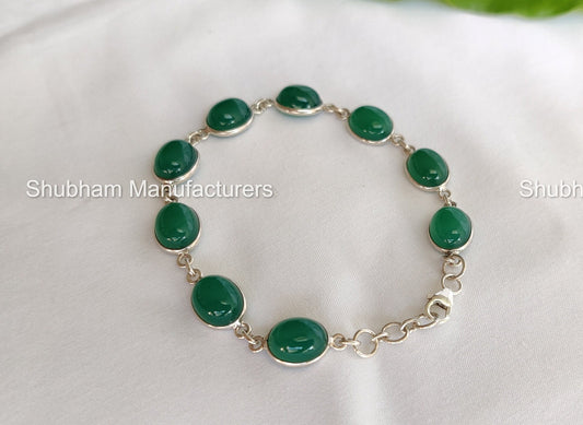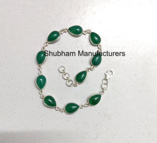 Green Onyx Bracelet, 925 Sterling Silver Bracelet, Green Gemstone Bracelet, Green Onyx Jewelry, Adjustable Bracelet for Women, Gift for Her