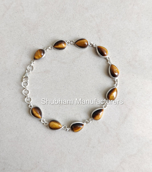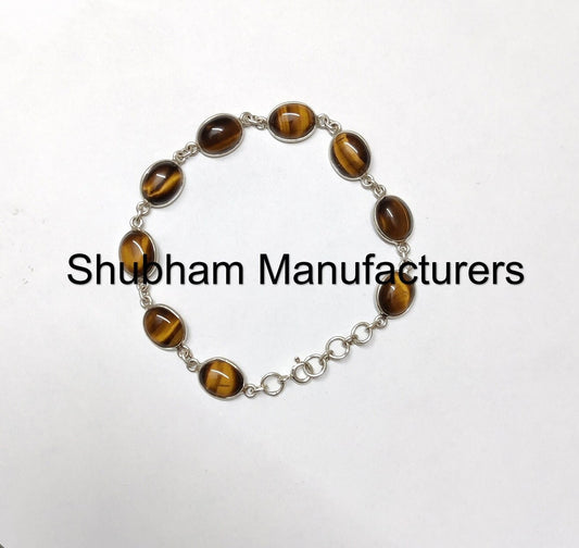 Natural Tiger Eye Bracelet, 925 Sterling Silver Bracelet, Tiger Eye Silver Jewelry, Brown Gemstone Adjustable Bracelet, Birthstone Gems Gift
