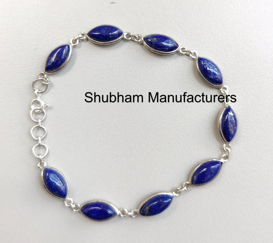 Lapis Lazuli Bracelet, 925 Sterling Silver Bracelet, Marquise Gemstone Bracelet, Blue Lapis Jewelry, Women Fine Bracelet, Handmade Bracelet