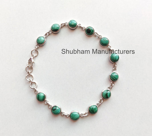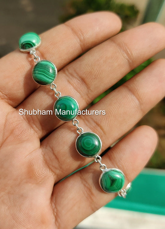 Natural Malachite Bracelet, 925 Sterling Silver Bracelet, Handmade Wedding Bracelet, Green Gemstone Adjustable Bracelet, Birthstone Jewelry