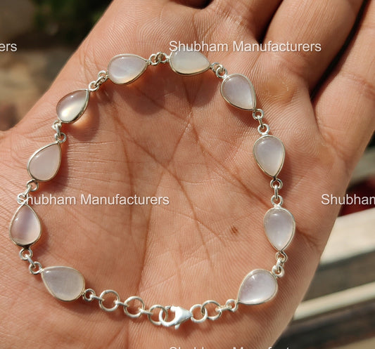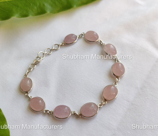 Natural Rose Quartz Bracelet, 925 Sterling Silver Bracelet, Pink Stone Bracelet, Pink Quartz Silver Jewelry, Adjustable Gemstone Bracelet