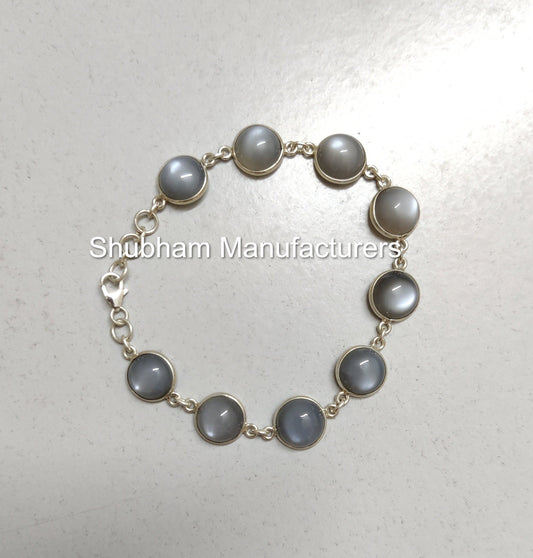 Natural Gray moonstone Bracelet, 925 Sterling Silver Bracelet, Healing Gemstone Adjustable Bracelet, June Birthstone Jewelry for Women