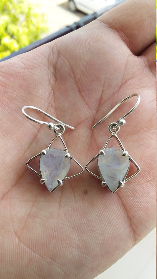 Rainbow moonstone Silver Earrings, handmade Earring, 925 sterling Silver Earrings, Dangle and Drop Earring, Earring, white with blue fire