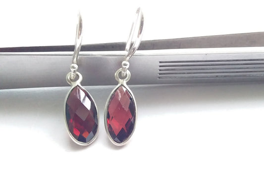 Garnet earrings sterling silver, Bezel earrings drop, Gemstone silver earrings, Dangle Earrings, Earrings for Girls, Red stone earrings