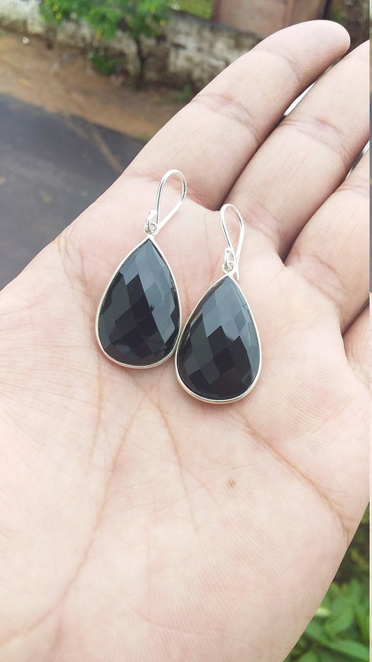 Natural black onyx earrings, 925 sterling silver Handmade Earrings, Gift for Her, December Birthstone, Birthday Gift, Black Earrings Jewelry