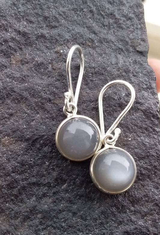 Natural Round Shape Gray Moonstone 925 Sterling Silver Handmade Earrings, Gift for her, Birthstone Earrings