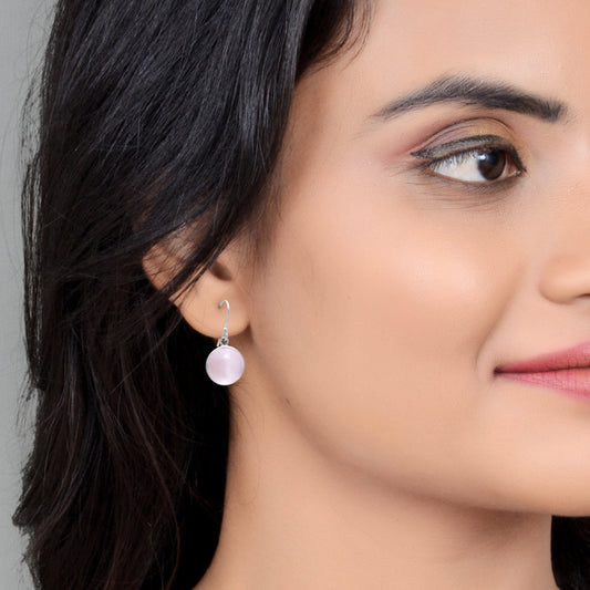 Genuine Rose Quartz Earrings, 925 Sterling Silver Earrings, Pink Stone Earrings, Quartz Jewelry for Her, Dangle Earrings, Cabochon Gemstone