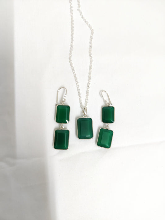 Green Onyx Earring Necklace Set, Dual Stone Earrings, Onyx Pendant Necklace, Green Onyx Jewelry, Bridesmaid Jewelry, Gift for Her