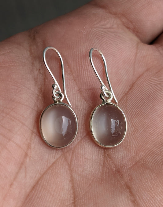 Gray Moonstone Earrings, 926 Sterling Silver, Genuine Gray Moonstone Artisan Crafted Oval Drop Earrings Gift, Everyday Earrings for Her