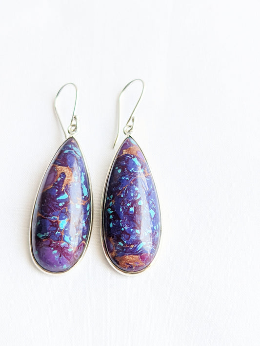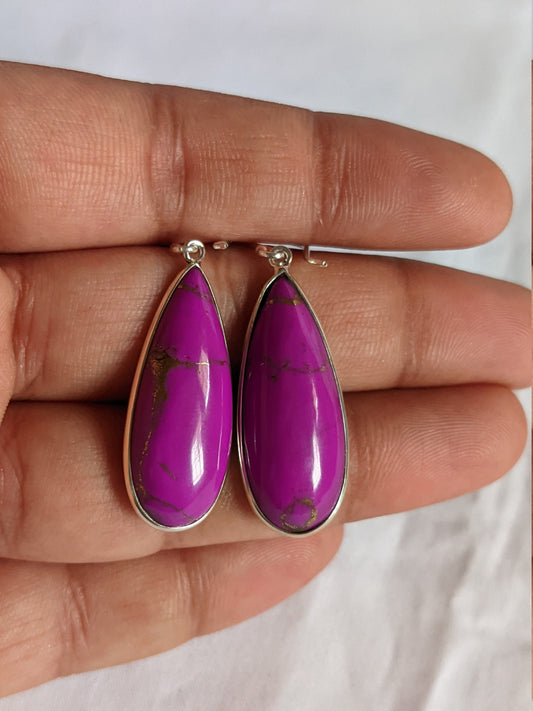 Purple Turquoise Earrings, 925 Sterling Silver Earrings, Drop Dangle, Everyday Jewelry, Teardrop, Women's Earrings, Cabochon Stone, For Her