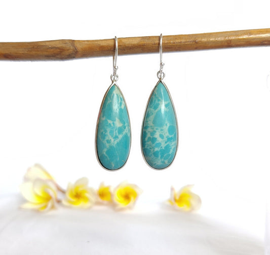 Larimar Earrings, 925 Sterling Silver Earrings, Teardrop Earrings, Gemstone Dangle Earrings, Natural Stone Jewelry, Handmade Gift for Her