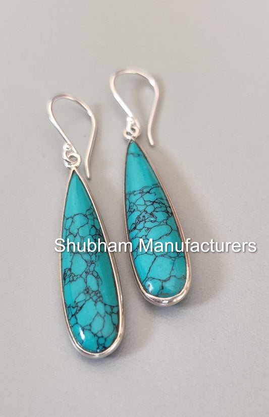 Genuine Turquoise Earrings, 925 Sterling Silver Earrings, Turquoise Silver Jewelry, Teardrop Gemstone Earrings, Wedding Jewelry for Women