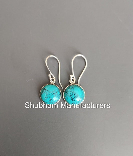 Turquoise Earrings, 925 Sterling Silver Jewelry, Turquoise Dangle Earrings, Everyday, Cabochon Gemstone, Gift for Her, Handmade, Birthstone